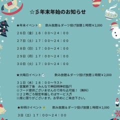 年末年始お知らせ♬ 🧑‍🎄クリスマスイベント21日〜25日 (サンタ服&xmasデート服・お通し¥550) 🍻年末年始お知らせ 元旦・2日店休 (26日〜4日飲み放題&ダーツ投げ放題) 🎯ねねちゃん20日PERFECT横浜出場 🎯JAPANレディースなのちゃん在籍 🥂遠隔ドリンクプレゼント https://t.co/2yFPMRf4rG https://t.co/4vlBTlzlC1