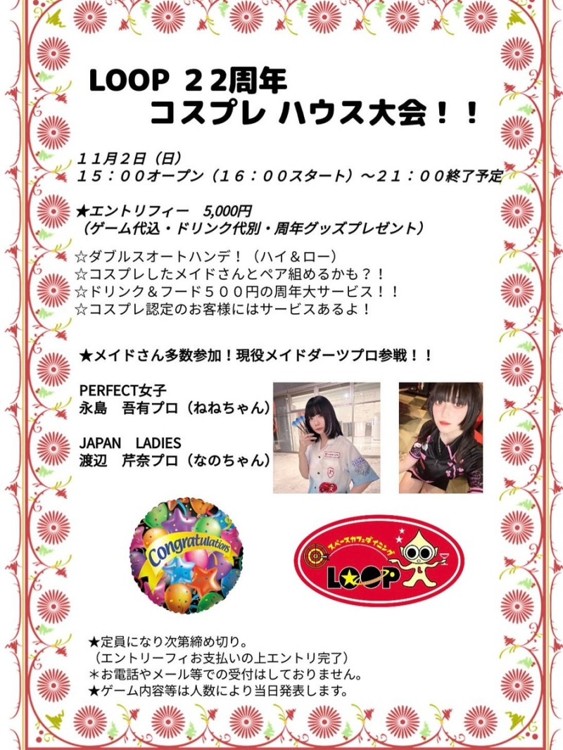 月曜日は定休日の為、店休になります。 ★LOOP CUP 22nd✨anniversary✨ 先日ご参加頂いた皆様お疲れ様でした♬ 優勝  まんじゅう&ぬま 準優勝 いっち&ひよこ 3位  ひで&きり ㊗️おめでとうございます🎊 https://t.co/sG4n1kYaZS