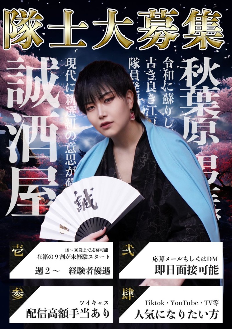 【男装募集】 誠酒屋の"新人隊士"を募集します🏯🌕 新撰組の和装を着て、いつもと違う自分にチャレンジしよう🇯🇵 【経験者優遇・🔰未経験者 大歓迎です!】 即日、面接OK👌ご応募、詳細はこちらから 👉 https://t.co/xbwZHPL2xP #秋葉原 #男装カフェ #誠酒屋 #男装バイト #コンカフェ求人 #TikTok https://t.co/Q9fBExTNBt