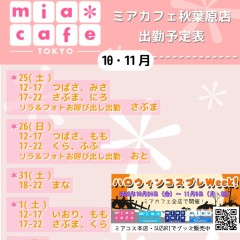 👑10月26日(日)のミアカフェ秋葉原店 💖12:00〜22:00営業💖 🎃昼 つばさ・もも 🎃夕 くら・ふふ 🎃リラフォト おと 🧙‍♀️ハロウィン仮装イベント 🍀おでかけイベント #メイドさん といっぱいお話しできる #メイドカフェ #リフレ #撮影会 ■場所 末広町駅徒歩1分/秋葉原駅7分 千代田区外神田3-7-9 201 https://t.co/8vdOaIpg5H