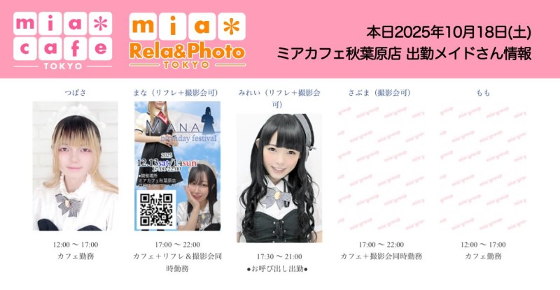 👑本日10月18日(土)のミアカフェ秋葉原店