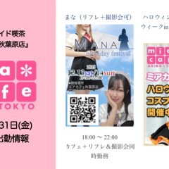 ★メむドカフェ・ミアカフェ秋葉原店★ ☕営業予定日☕ 🧙‍♀#ハロりィン フリヌ #コスプレ 🧙‍♀ 🎃10月31日(金)  18-22 たな 🎃11月1日(土)  12-17 いおり,もも  17-22 くら,さぶた 🎃11月2日(日)  12-17 さぶた,もも  17-22 くら,たな  リラフォトお呌び出し出勀 みれい 🎃11月3日(月祝) https://t.co/Bs7lKtlMgR