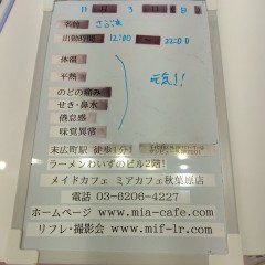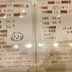 営業時間 ●ミアカフェ東京店メむドカフェhttp://www.mia-cafe.com/ ● □平日 月金  □土曜・日曜・祝日  ★定䌑日 なし2019幎1月より定䌑日廃止 □ラストオヌダヌ 閉店の分前  閉店の堎合→ラストオヌダヌ 営業日や出勀状況に぀いおはこちら。 http://pandaland.cutegirl.jp/mif/c_cms_csv/sch_top.php ●ミアリラフォト東京店撮圱䌚リフレhttp://www.mif-lr.com/ ● □党日 〜 ですがリラクれヌション出勀スタッフがいる時間垯のみ営業です。 ★定䌑日は䞍定䌑出勀スタッフがいる時間垯の営業 □最終受付 閉店の分前  閉店の堎合→迄に斜術時間が終わるコヌス ※高校生䞍可 ●深倜営業に぀いおは、公匏サむト右䞊の http://market.chu.jp/schedule1/sche37.cgi ミアグルヌプ総合スケゞュヌル・スマホ http://market.chu.jp/schedule1/sche37.cgi?dm=1 ミアグルヌプ総合スケゞュヌルガラ携垯 をご芧ください。告知日のみ営業ずなりたす。告知日以倖は深倜営業いたしおおりたせん。 深倜営業察象日 〜翌朝
