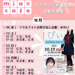 ミアカフェ秋葉原店たなさぶたです💛 本日10月13日(月祝)12:00〜22:00 おきゅいんしおいたす🪄⊹˚₊ ふたりずもフルタむムでいるので い぀でもお埅ちしおいたすっ https://t.co/pH4IZl4Kd9