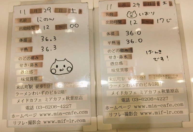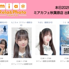 | å¶æ¥æé | âãã¢ã«ãã§æ±äº¬åºïŒã¡ã€ãã«ãã§ïŒhttp://www.mia-cafe.com/ãâ â¡å¹³æ¥ãæïœéãïŒïŒïŒïŒïŒïœïŒïŒïŒïŒïŒ â¡åæã»æ¥æã»ç¥æ¥ãïŒïŒïŒïŒïŒïœïŒïŒïŒïŒïŒ â å®äŒæ¥ããªãïŒ2019幎1æããå®äŒæ¥å»æ¢ïŒ â¡ã©ã¹ããªãŒããŒãéåºã®ïŒïŒåå ãïŒïŒïŒïŒïŒéåºã®å ŽåâïŒïŒïŒïŒïŒã©ã¹ããªãŒããŒ å¶æ¥æ¥ãåºå€ç¶æ³ã«ã€ããŠã¯ãã¡ãã http://pandaland.cutegirl.jp/mif/c_cms_csv/sch_top.php âãã¢ãªã©ïŒãã©ãæ±äº¬åºïŒæ®åœ±äŒïŒãªãã¬ïŒhttp://www.mif-lr.com/ãâ â¡å šæ¥ãïŒïŒïŒïŒïŒãïŒïŒïŒïŒïŒãã§ãããªã©ã¯ãŒãŒã·ã§ã³åºå€ã¹ã¿ãããããæé垯ã®ã¿å¶æ¥ã§ãã â å®äŒæ¥ã¯äžå®äŒïŒåºå€ã¹ã¿ãããããæé垯ã®å¶æ¥ïŒ â¡æçµåä»ãéåºã®ïŒïŒåå ãïŒïŒïŒïŒïŒéåºã®å ŽåâïŒïŒïŒïŒïŒïŒïŒïŒïŒïŒïŒè¿ã«æœè¡æéãçµããã³ãŒã¹ïŒ â»é«æ ¡çäžå¯ âæ·±å€å¶æ¥ã«ã€ããŠã¯ãå ¬åŒãµã€ãå³äžã® http://market.chu.jp/schedule1/sche37.cgi ãã¢ã°ã«ãŒãç·åã¹ã±ãžã¥ãŒã«ïŒïŒ°ïŒ£ã»ã¹ããïŒ http://market.chu.jp/schedule1/sche37.cgi?dm=1 ãã¢ã°ã«ãŒãç·åã¹ã±ãžã¥ãŒã«ïŒã¬ã©æºåž¯ïŒ ãã芧ãã ãããåç¥æ¥ã®ã¿å¶æ¥ãšãªããŸããåç¥æ¥ä»¥å€ã¯æ·±å€å¶æ¥ããããŠãããŸããã æ·±å€å¶æ¥å¯Ÿè±¡æ¥ãïŒïŒïŒïŒïŒãç¿æïŒïŒïŒïŒïŒïŒ¬ïŒïŒ¯ïŒïŒïŒïŒïŒïŒ | ||||||||||||||