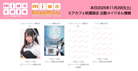 👑本日11月29日(土)のミアカフェ秋葉原店
