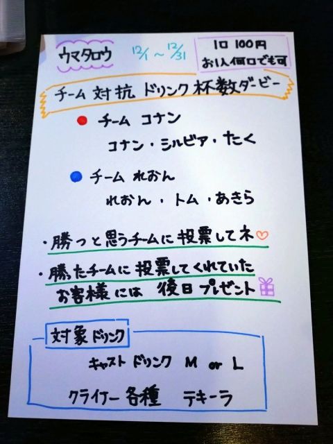 12月2日(土) ー●ーー●ーー●ーー●ーー   本日のウマタロウ ー●ーー●ーー●ーー●ーー     コナン     れおん      たく     あきら 4人でいざ拳断😄👍 ドリンク🍺杯数ダービー🐎 盛り上がっていきます♥ #ミックスバー #ミナミ #LGBTさんと繋がりたい https://t.co/dQelFNfYTX